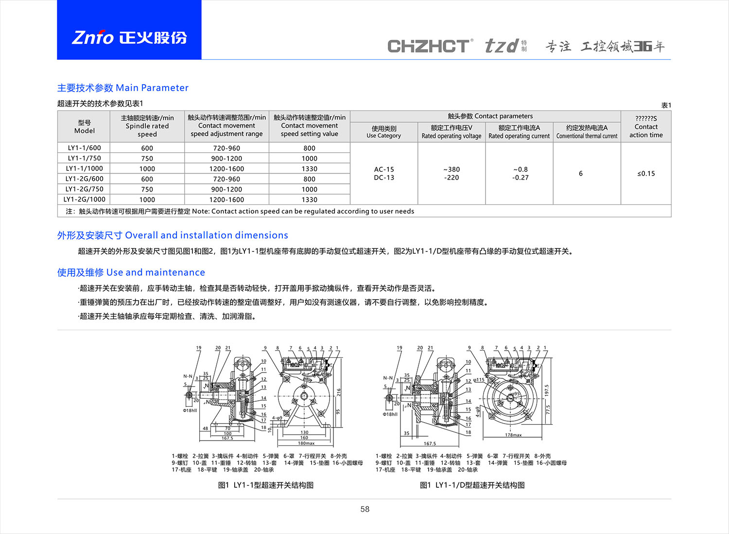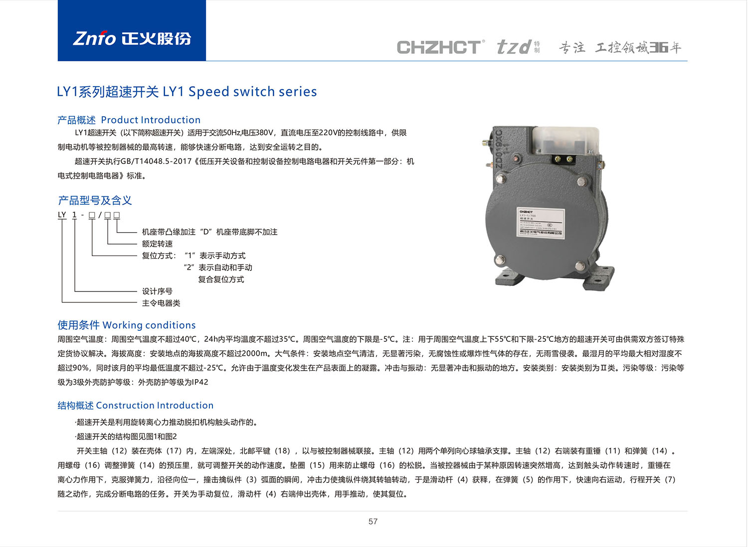 LY1系列超速开关产品说明书