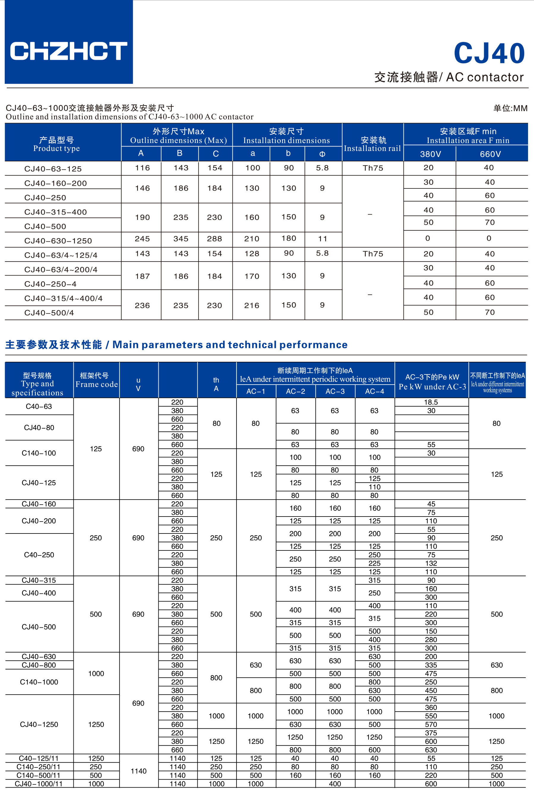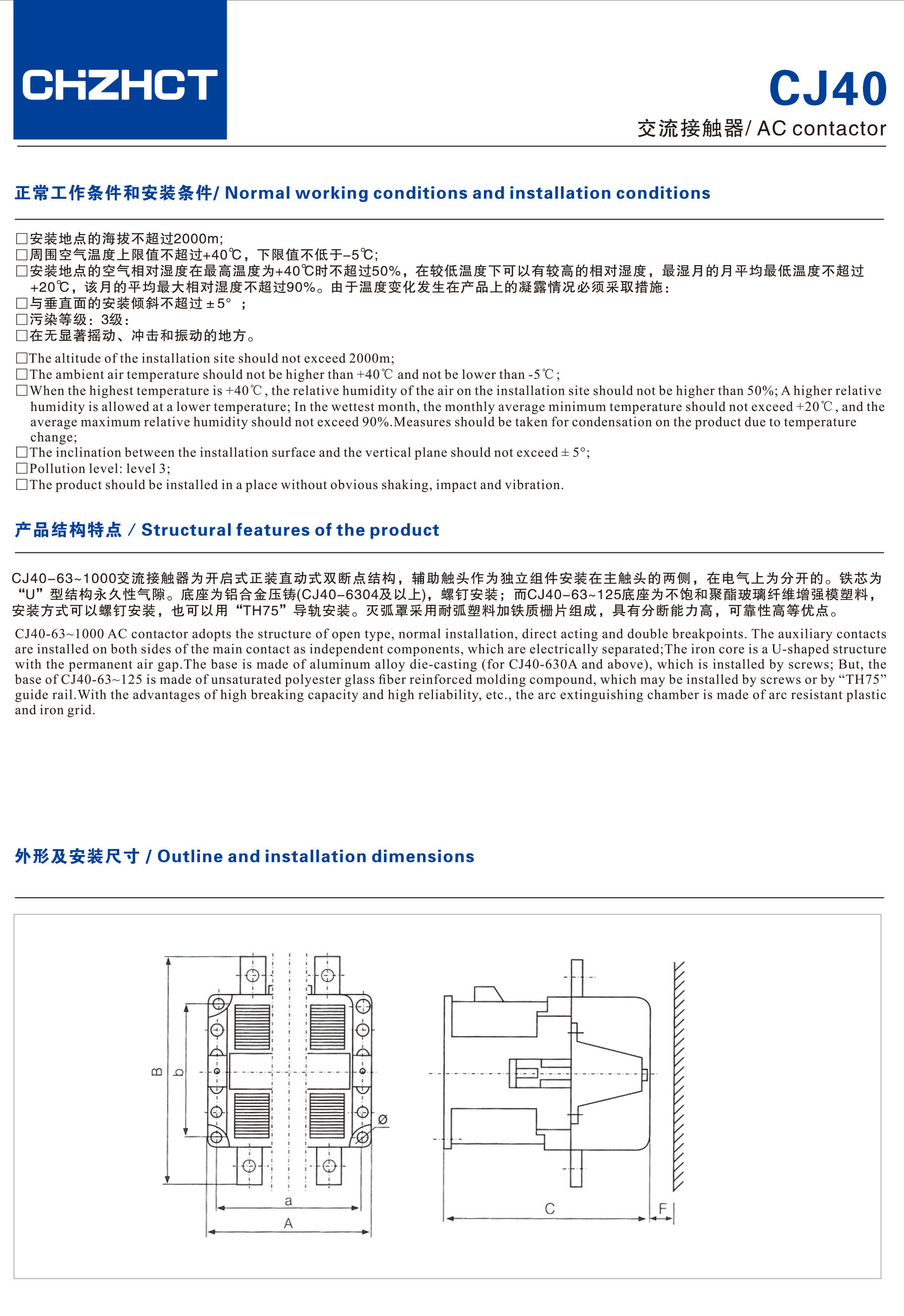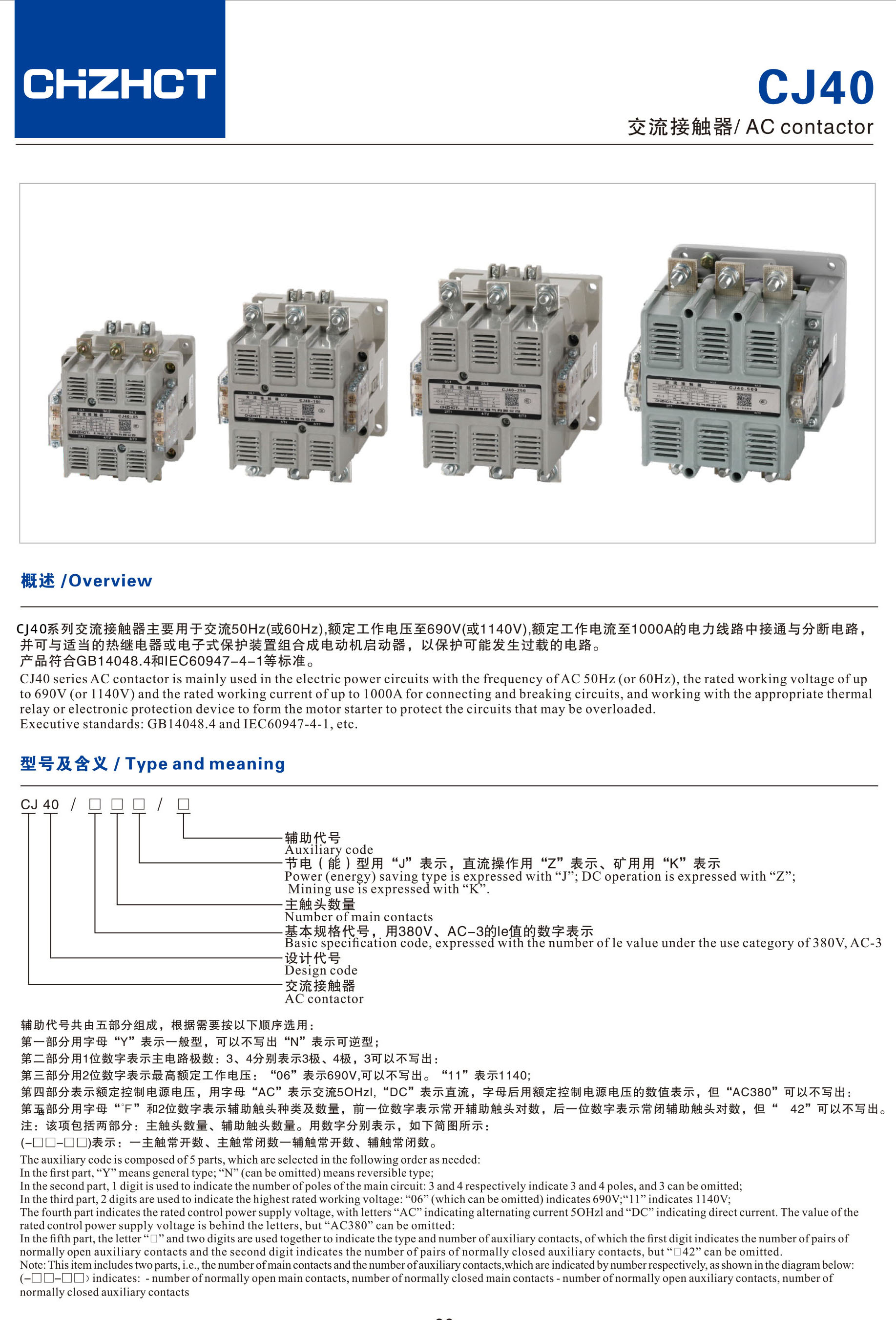 CJ40交流接触器产品说明书