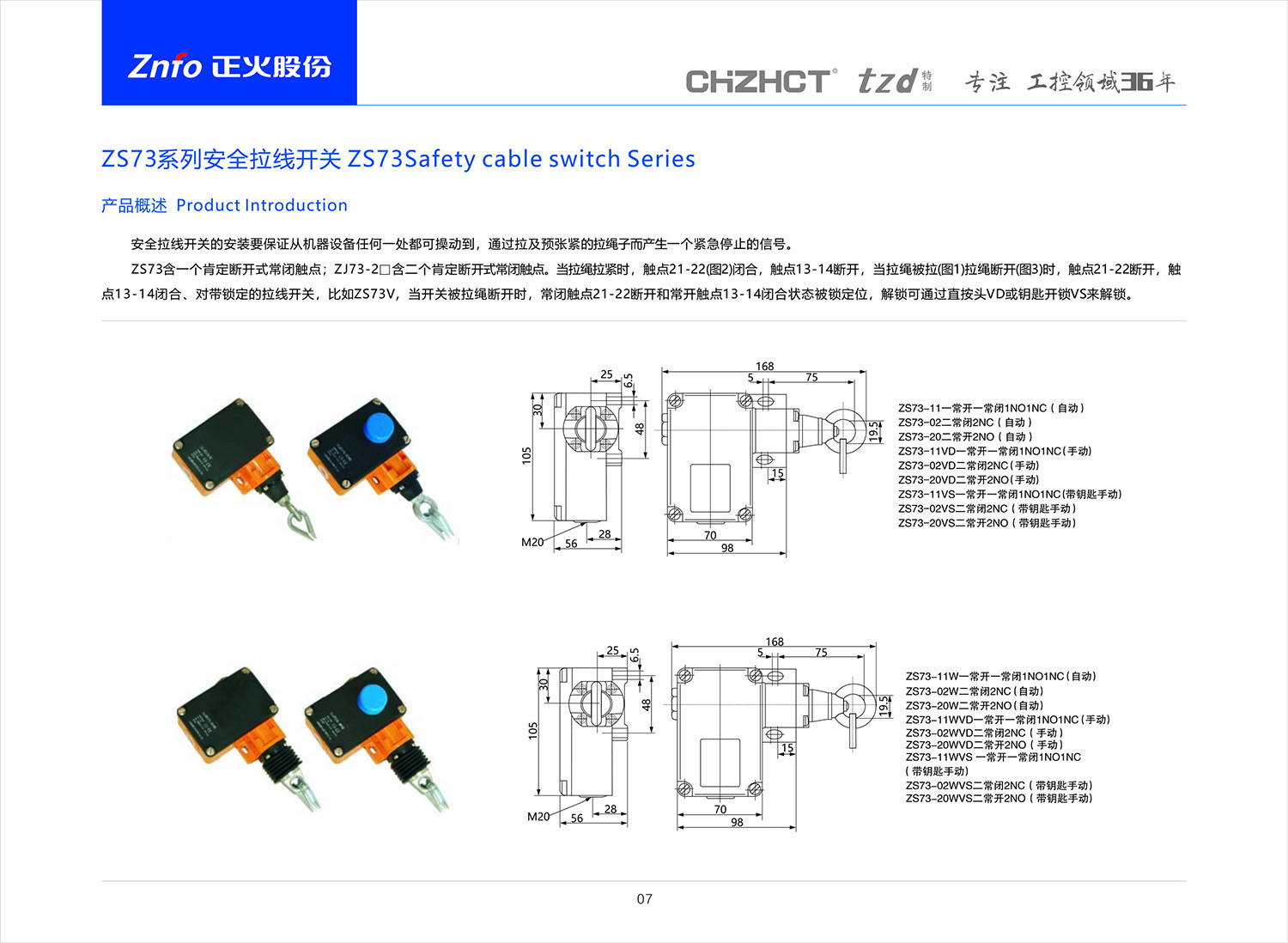 ZS73安全拉线开关_拉绳开关_行程/微动/跑偏/拉绳/超速_工业控制与保护_产品中心_KY.COM-开云(中国)电气股份有限公司