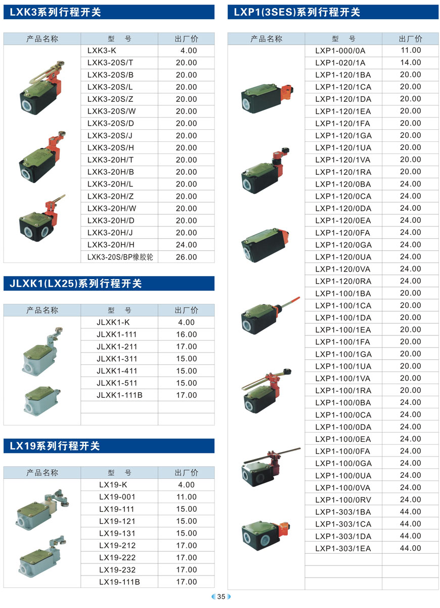 LXK3、JLXK1(LX25)、LX19、LXP1(3SES)系列行程开关