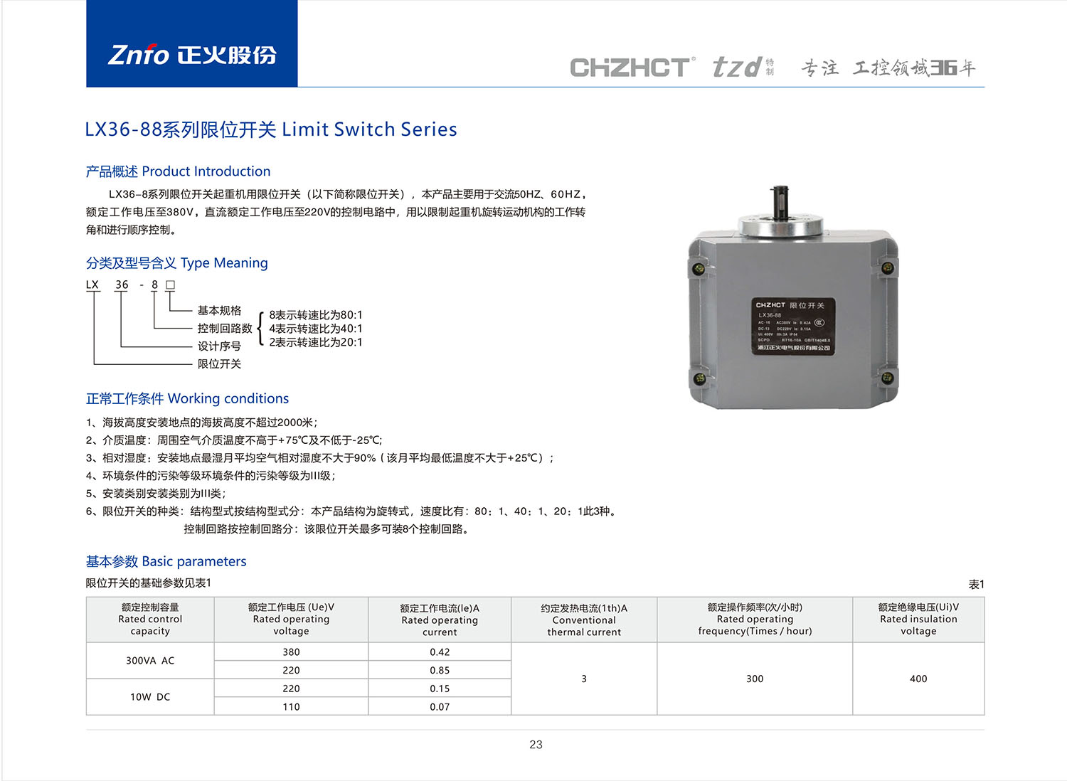 LX36-8系列限位开关产品说明书
